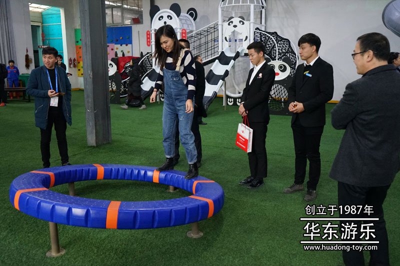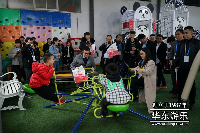 参观人员体验完美wm365体育游乐生产的手动转椅