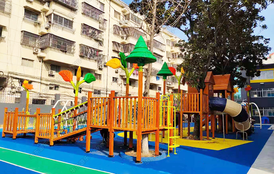 江苏省泰兴市育红幼儿园城西分校是经教育部批准的优秀幼儿园,该幼儿园此次采用的是完美wm365体育游乐生产的木制系列产品,具有爬网、攀爬、滑梯、脚踏水车、传声筒、钻洞等游乐设施。