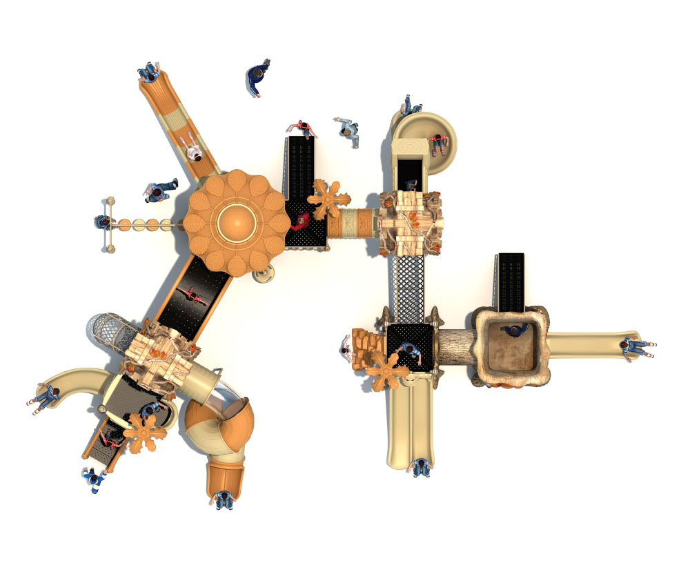 • 远古部落系列虽然名字带着“古”字,但是在设计细节处无不透露着艺术与创造性。当孩子在仿真树中探索、冒险、嬉戏游玩时,就像穿越到古老的神秘森林;粗略的树干包围着他们,头顶是高耸的茅草屋,触感真实的枯枝走廊,还有随处可见的小动物们…… 远古部落系列旨在打造区别于其他系列带给孩子们的新鲜感,让孩子们找设计者打造的神秘世界中获得冒险的乐趣。