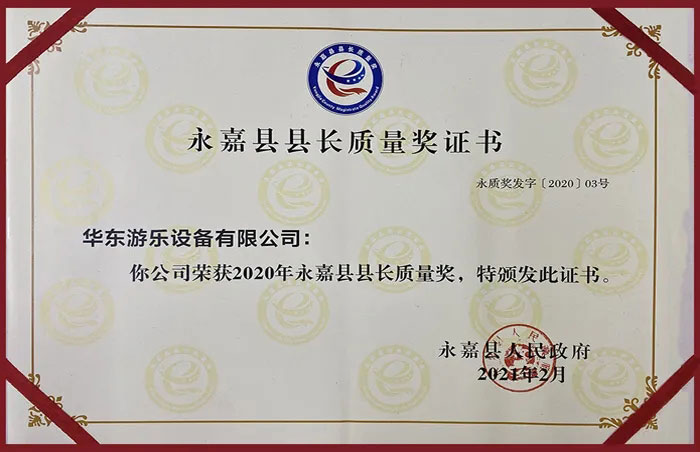 2020年,对广大企业来说注定是困难的一年,作为游乐设备行业的先锋企业,完美wm365体育游乐紧紧围绕永嘉县总体经济发展为目标任务,主动适应经济发展新常态,积极应对2020年疫情期间的“复工复产”等工作,取得了显著成绩,被永嘉县人民政府评为“2020年度巨龙企业”和“县长质量奖”的荣誉。