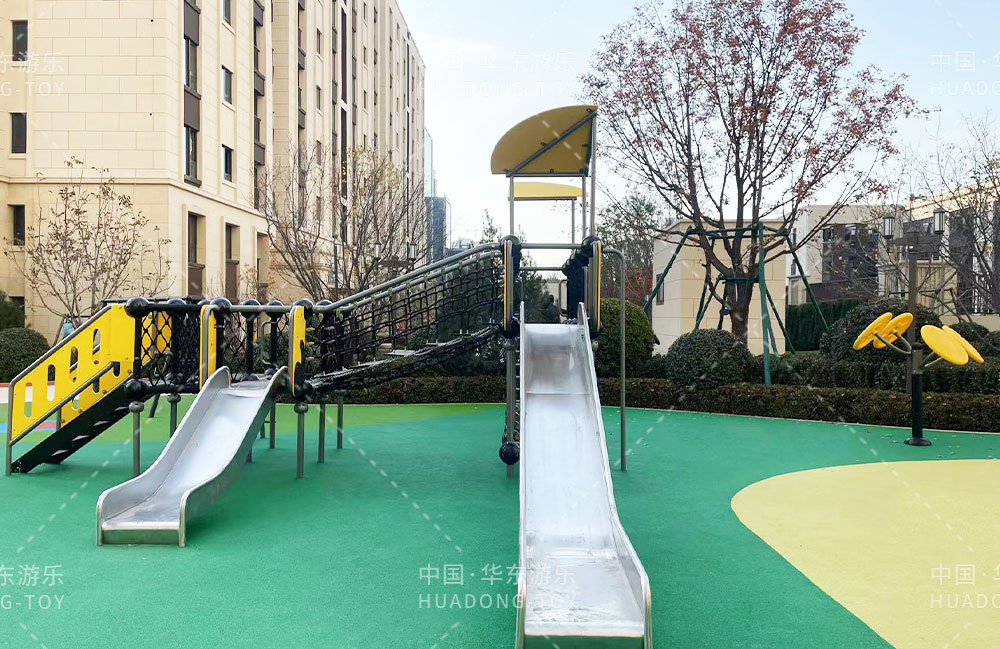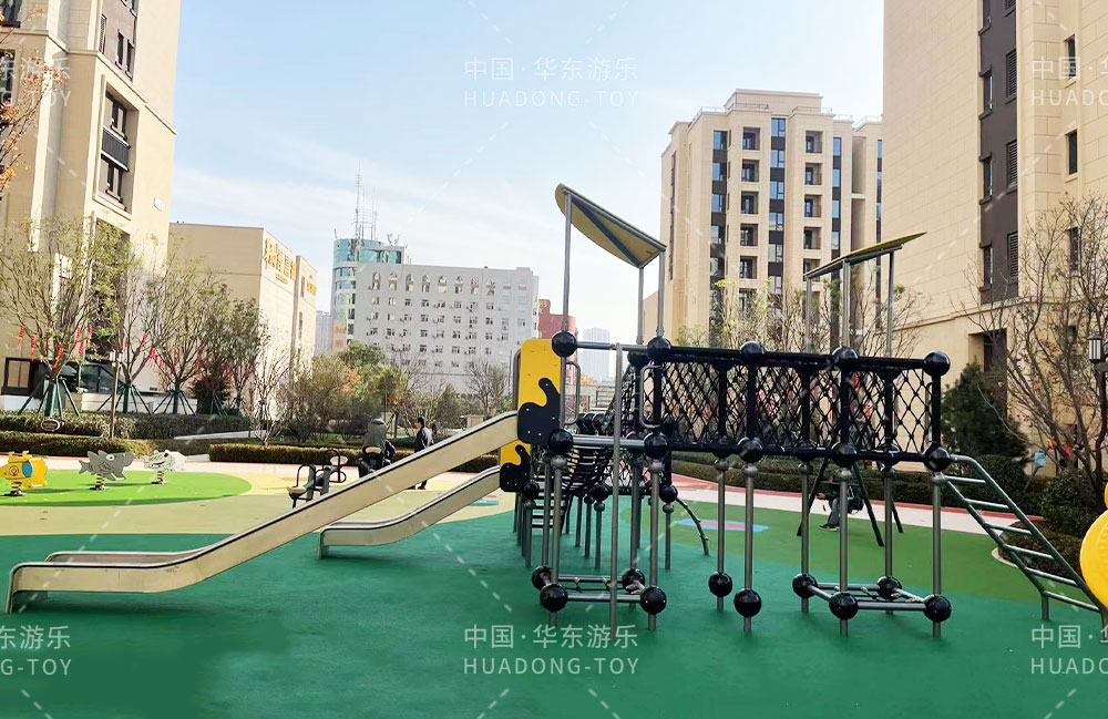 太原华润昆仑域地产项目选用的是完美wm365体育游乐自主研发的游乐设备,娱乐场里选用了健身器材、具备攀爬网、不锈钢滑梯为一体的综合性游乐设备,为生活在该小区的人们提供了一个生活、休闲、娱乐的场所。