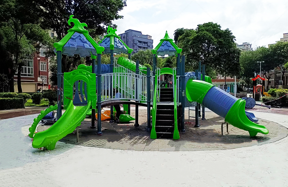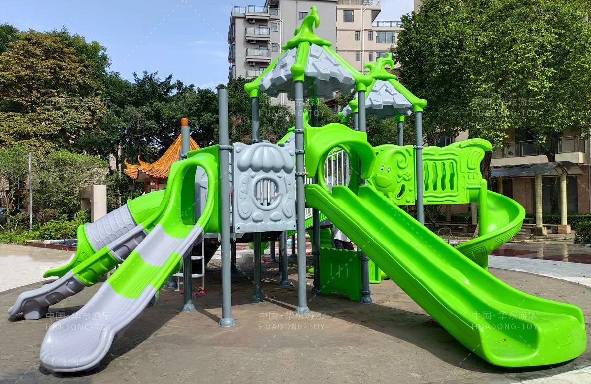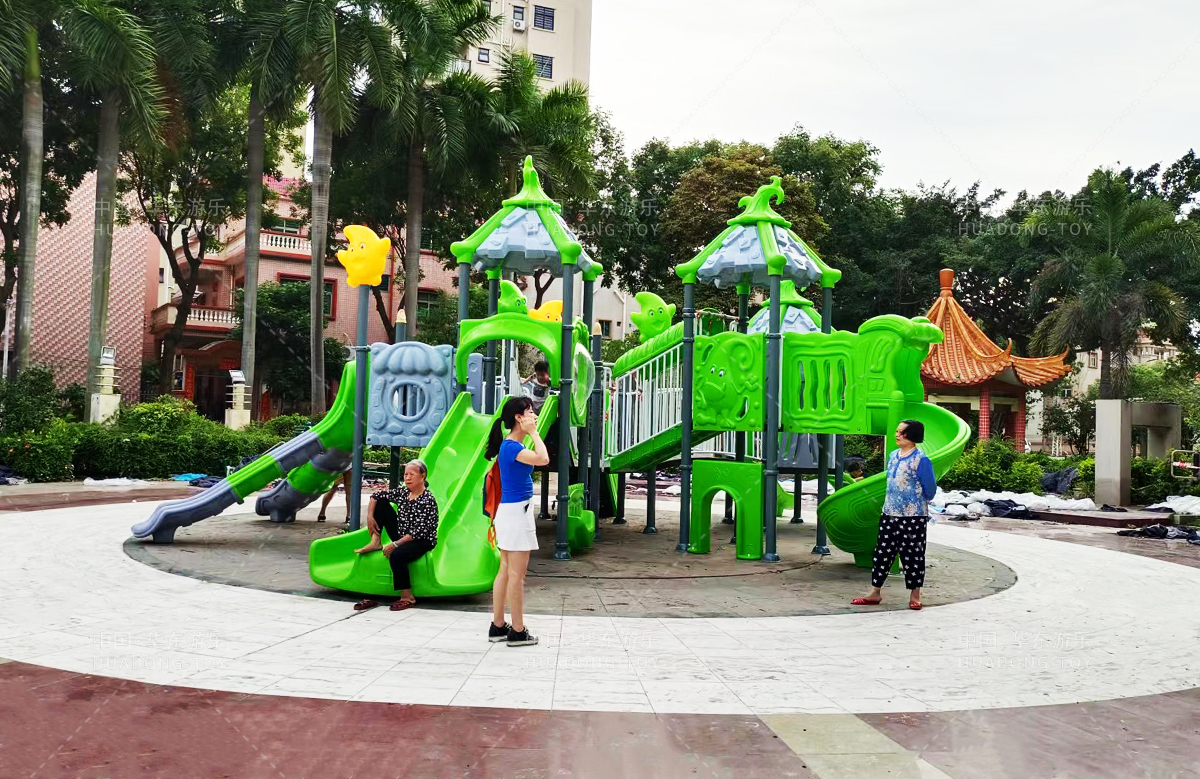 该小区选用的是完美wm365体育游乐自主研发和设计的具有攀爬、钻洞、滑梯为一体的魔法屋系列组合滑梯和动物园系列滑梯,让生活在该小区的人有一个休闲娱乐的场所。