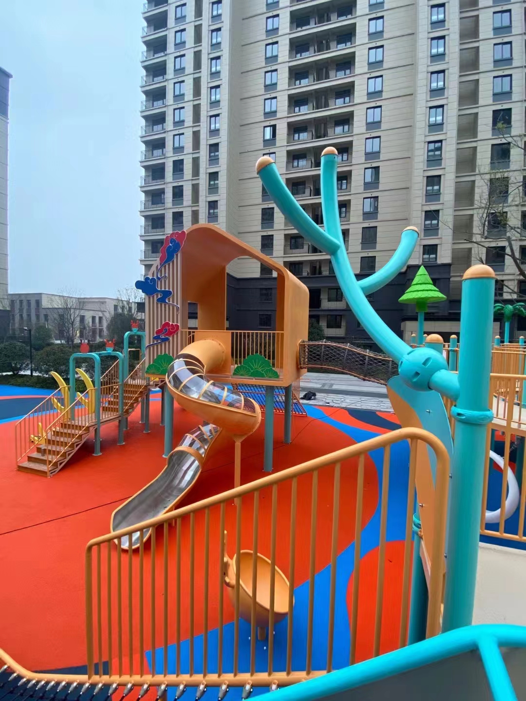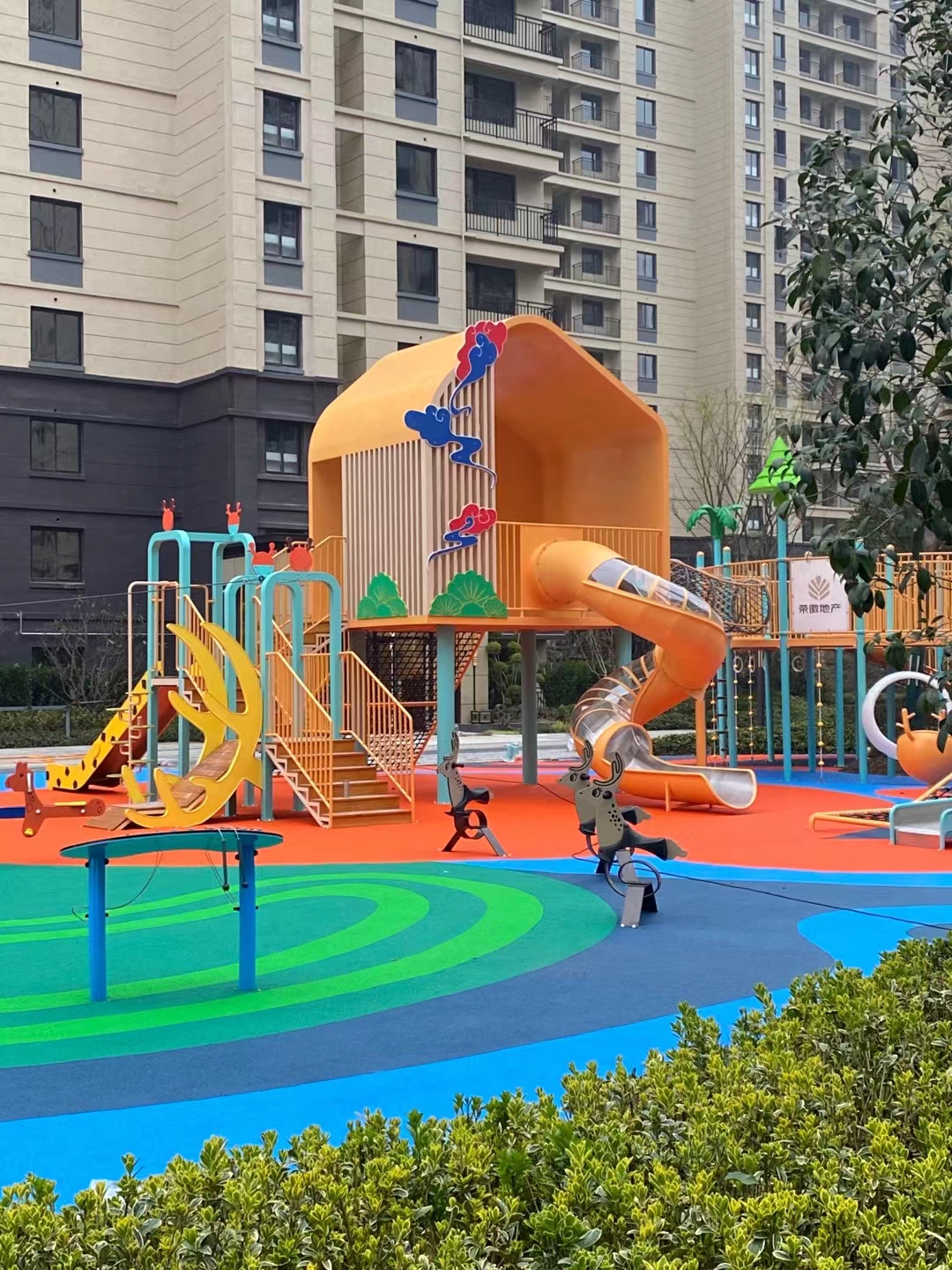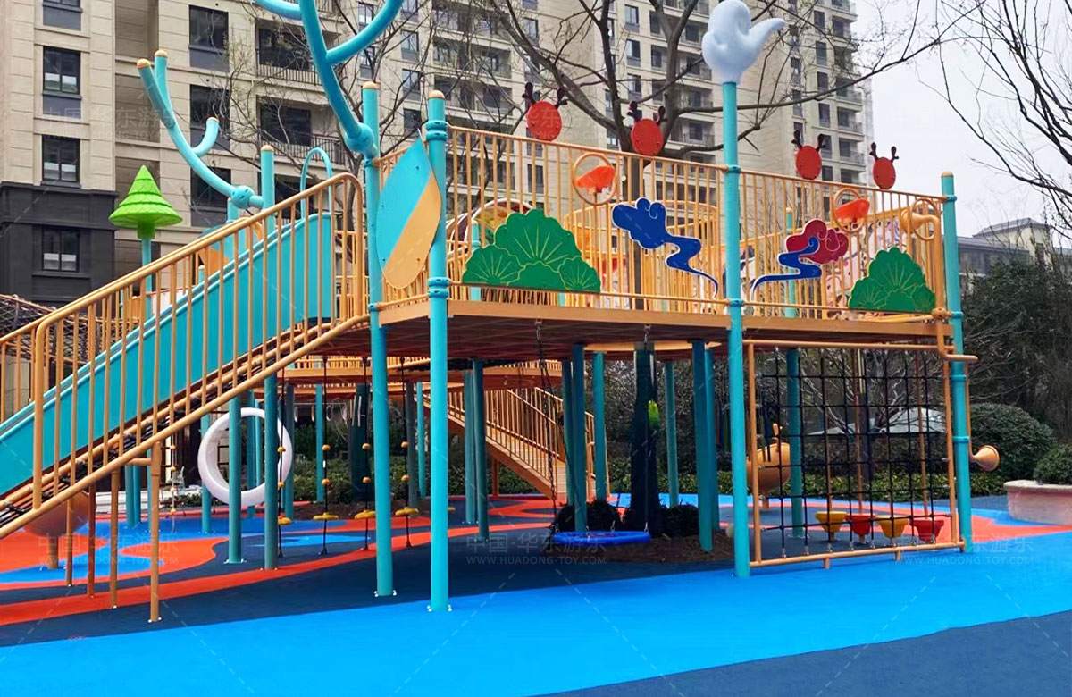 建投东方名府源著儿童游乐项目是完美wm365体育游乐生产的非标定制的主题性游乐设备,整个项目采用以森林麋鹿为设计主题,分别设计了攀爬网、钻洞、不锈钢滑梯、旋转椅、传声筒、秋千、脚踏平衡杆、攀爬梯等功能,为小朋友的健康成长提供了一个很好的游玩场所。