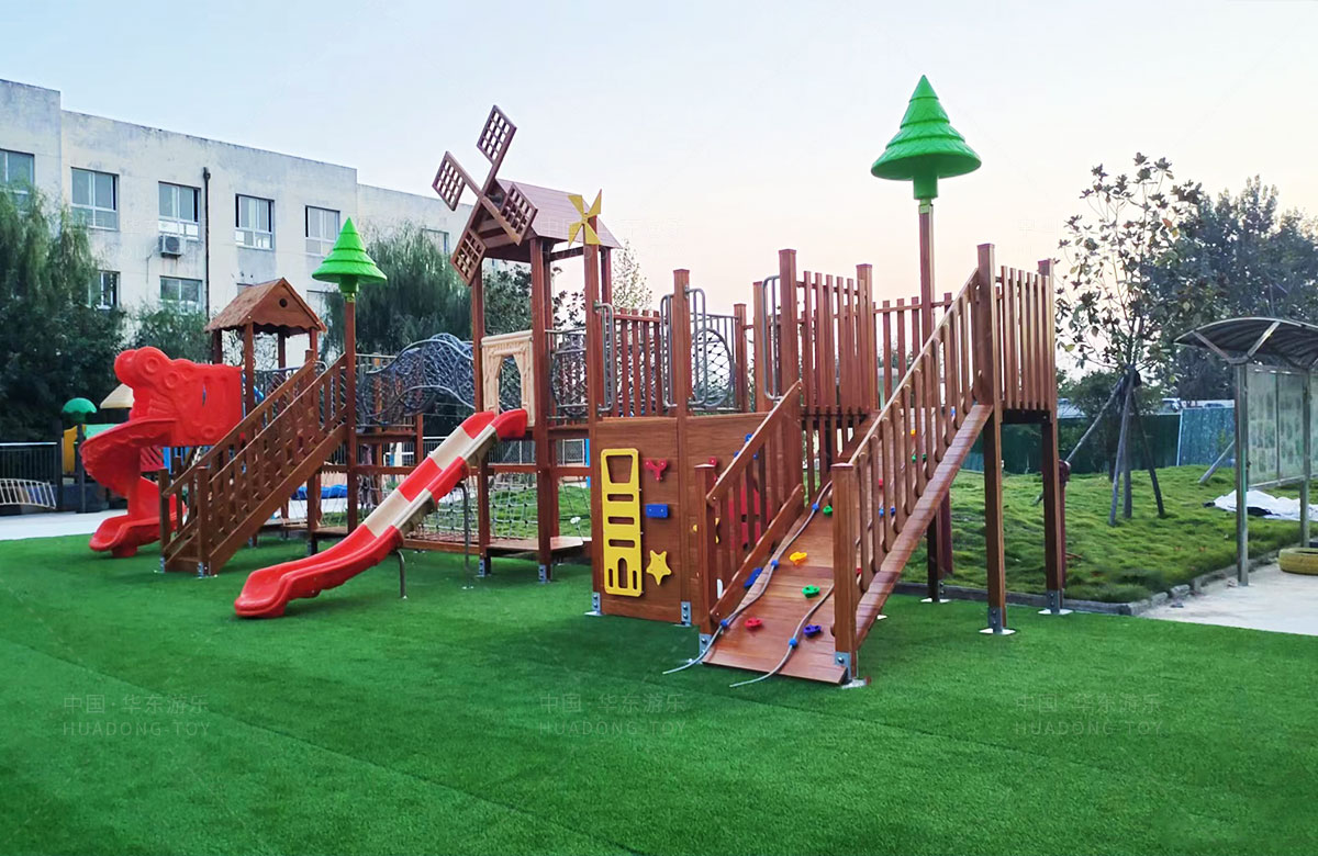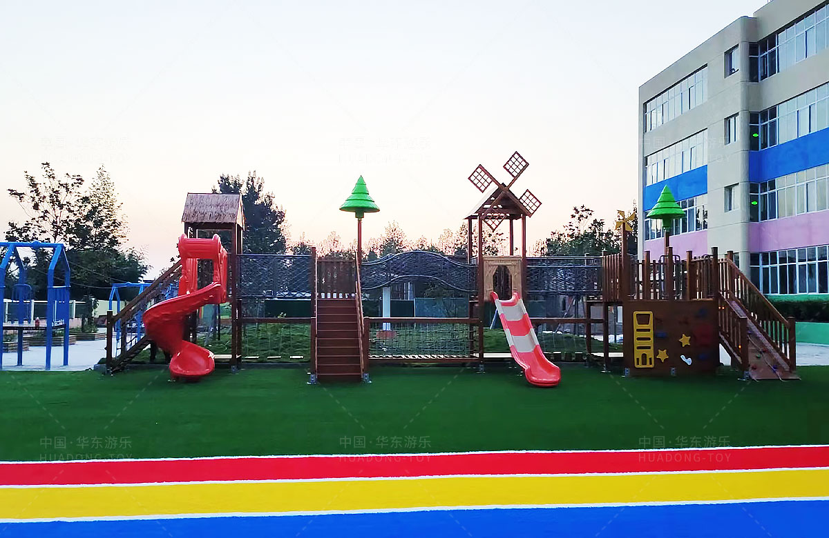 团林镇中心幼儿园是一所专业性的学期教育学校,此处选用的是完美wm365体育游乐自主研发和设计的魔法屋系列组合滑梯和木制拓展游乐设备,具备了攀爬、钻洞、滑梯、攀爬网、攀爬梯等功能为一体,不仅仅为小朋友提供了一个很好的游乐环境,也为老师的教学提供了帮助。