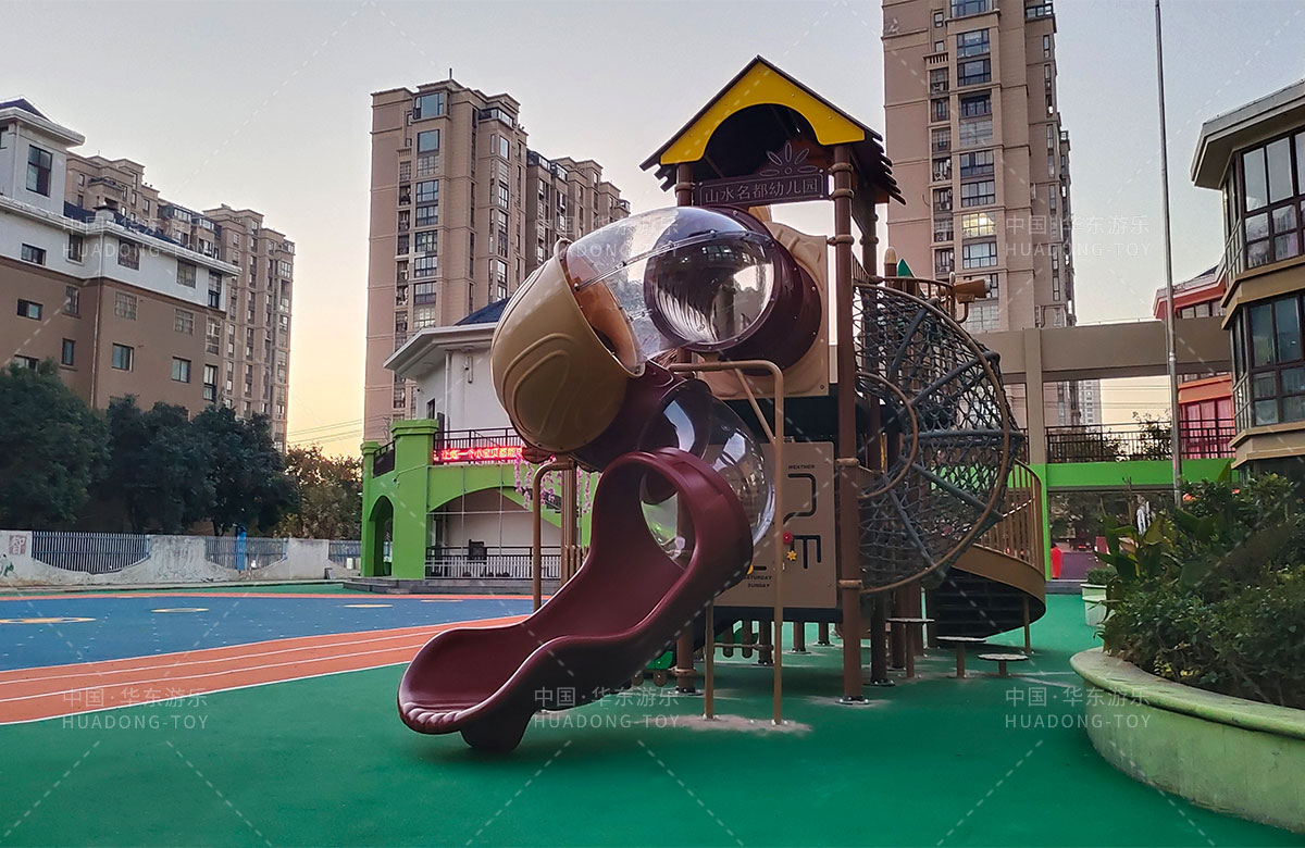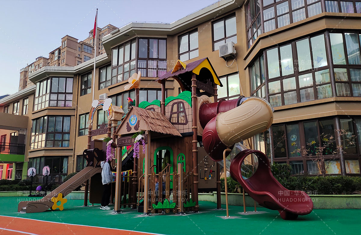 江苏省淮安市山水名都幼儿园是一家专业的学期教育培训机构,此次选用的是完美wm365体育游乐自主研发和设计的通话庄园系列组合滑梯,该设备具备了攀爬网、攀爬墙、打击乐器、旋转滑梯等功能,是一款功能齐全、主题鲜明、颜色艳丽、品质优越的综合性游乐设备,非常适合幼儿园。