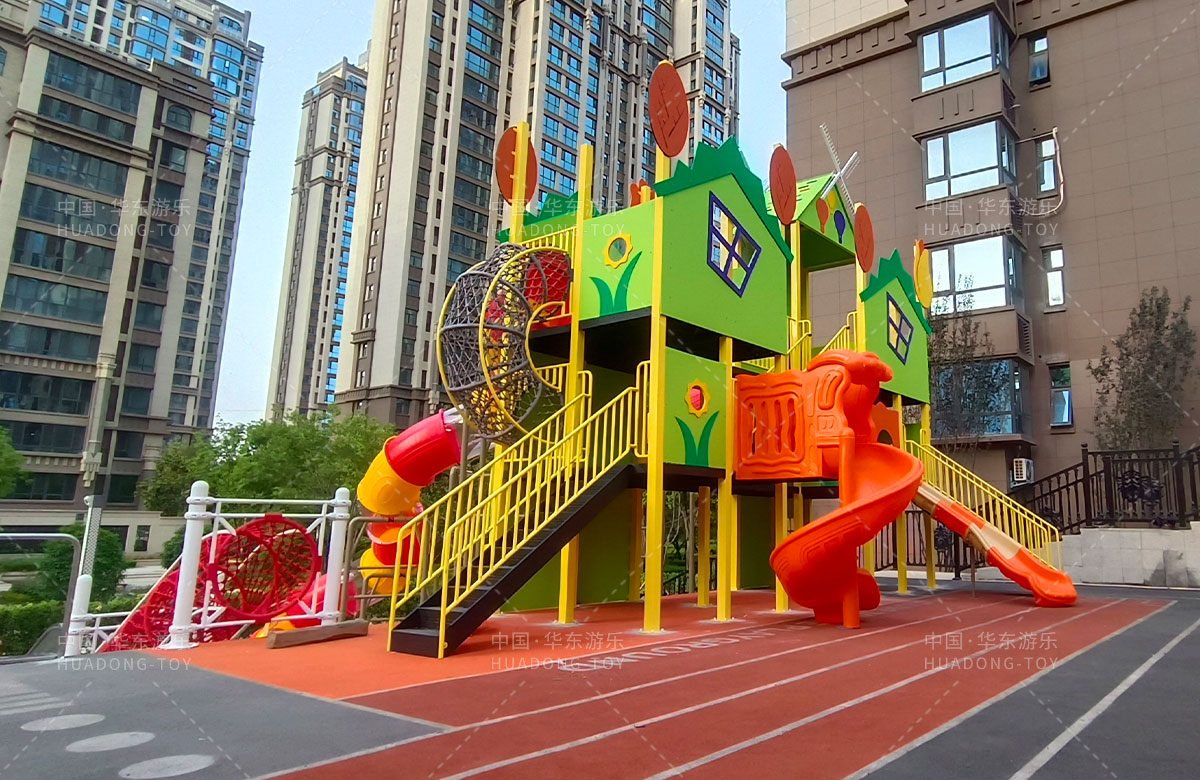 • 德福房地产骏景御园选用的是完美wm365体育游乐自主研发和生产的趣味小屋为主题的游乐设备,整个场地分别设置了小朋友喜欢的组合滑梯、旋转座椅、不锈钢滑梯、组合秋千、各种类型的拓展游乐设备,不仅仅丰富了小区的生活,也为孩子们的健康成长提供了保障。