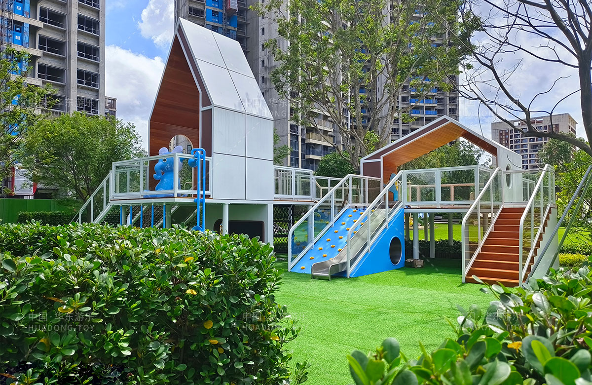 广东惠州润溪花园是一个高端的生活小区,为了更好的 服务生活中当地的居民,完善小区的配套设施,该小区选用的一个以小象的田野乐园为主题的游乐园,齐全的功能、艳丽的颜色深受孩子们的喜爱,同时为了更好的为孩子们提供一个休闲娱乐的场所,整个游乐场还设置了小朋友喜欢的儿童摇摇乐、组合秋千、翻翻乐、攀爬网等游乐器械。